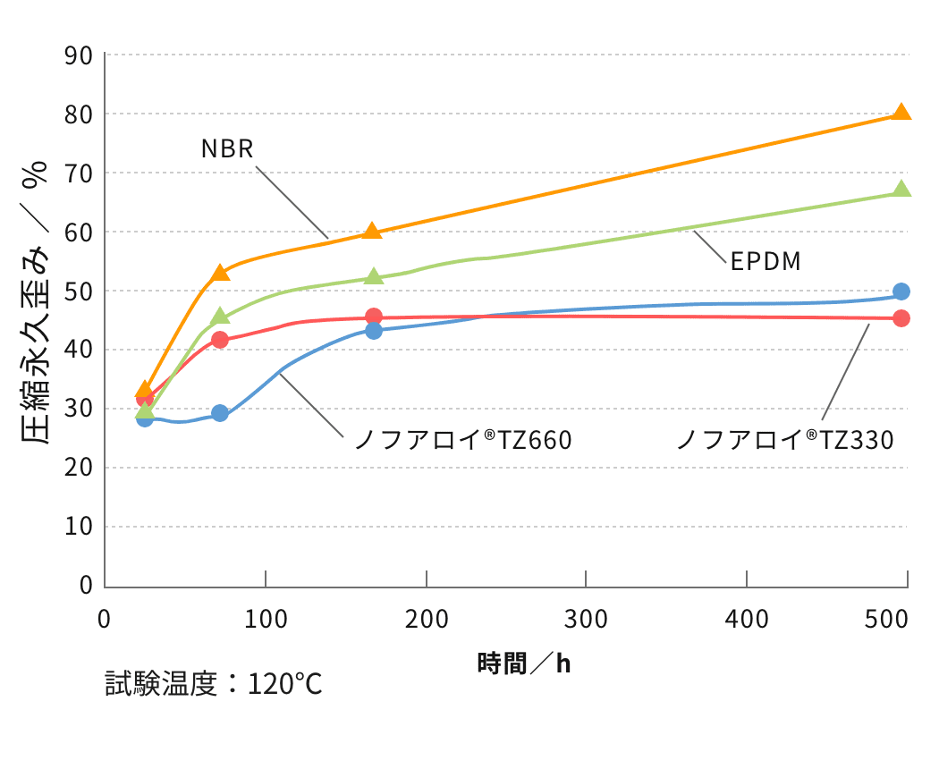 ノフアロイ®TZシリーズは、熱可塑性エラストマーの中でも優れた圧縮永久歪みを有しています。