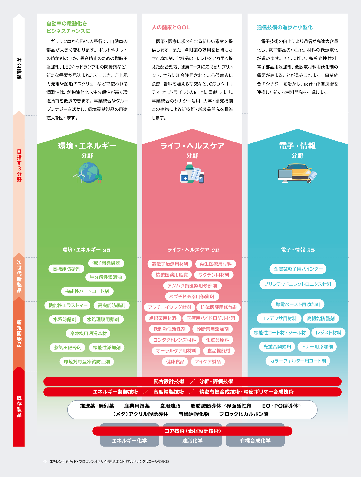 「NOF VISION 2030」の実現を目指し、日油グループそして社会全体の持続可能性を高めていきます。