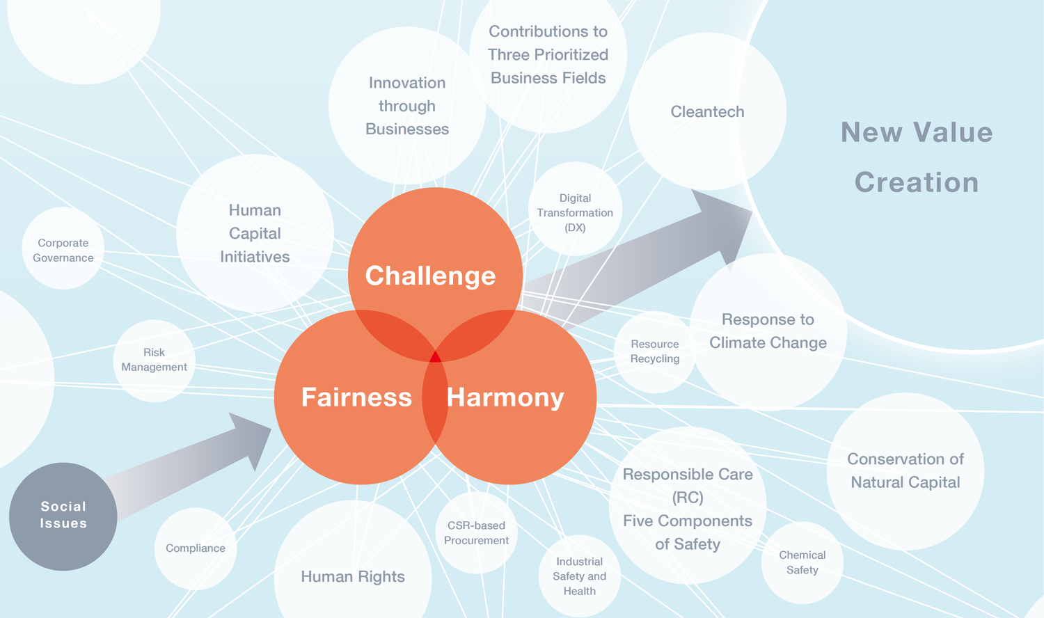 The NOF Group aims to create new value through the synergy of these three values.