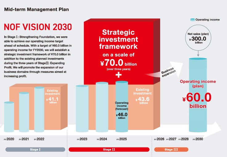 A corporate group that continuously creates new value with the power of chemistry in the three business fields of “Life/Healthcare” , “Environment/Energy” , and “Electronics/IT”, in order to realize a prosperous and sustainable society